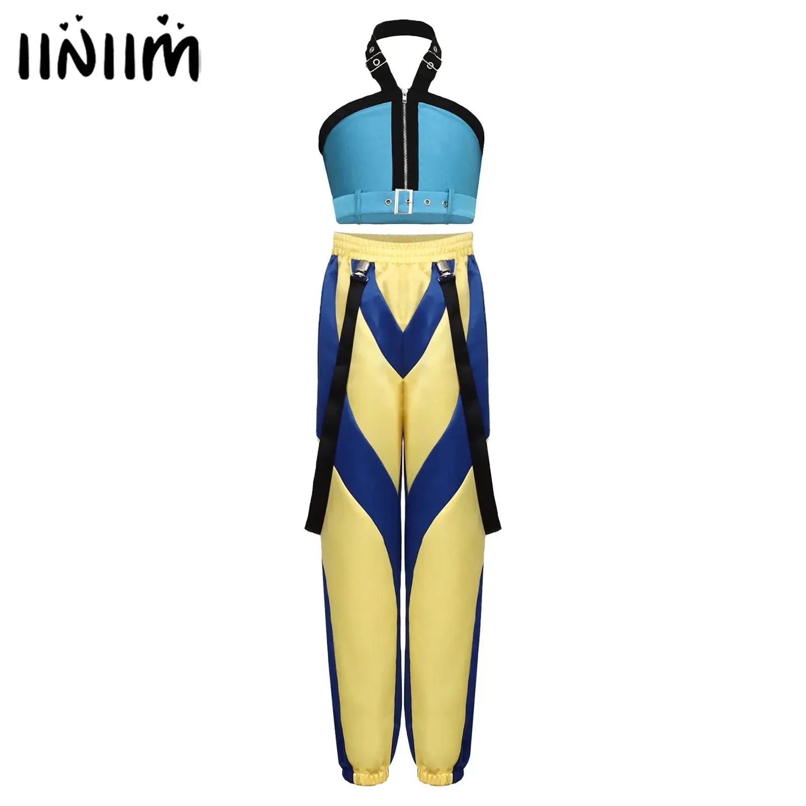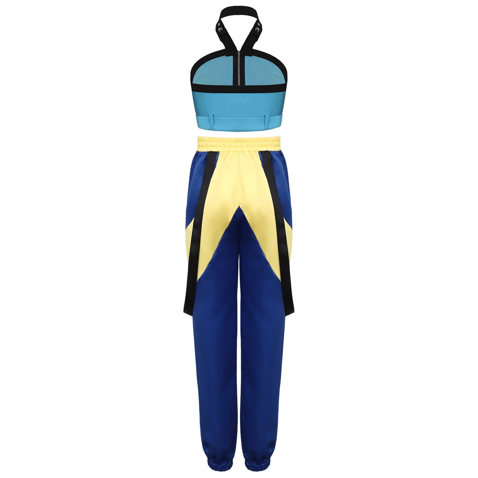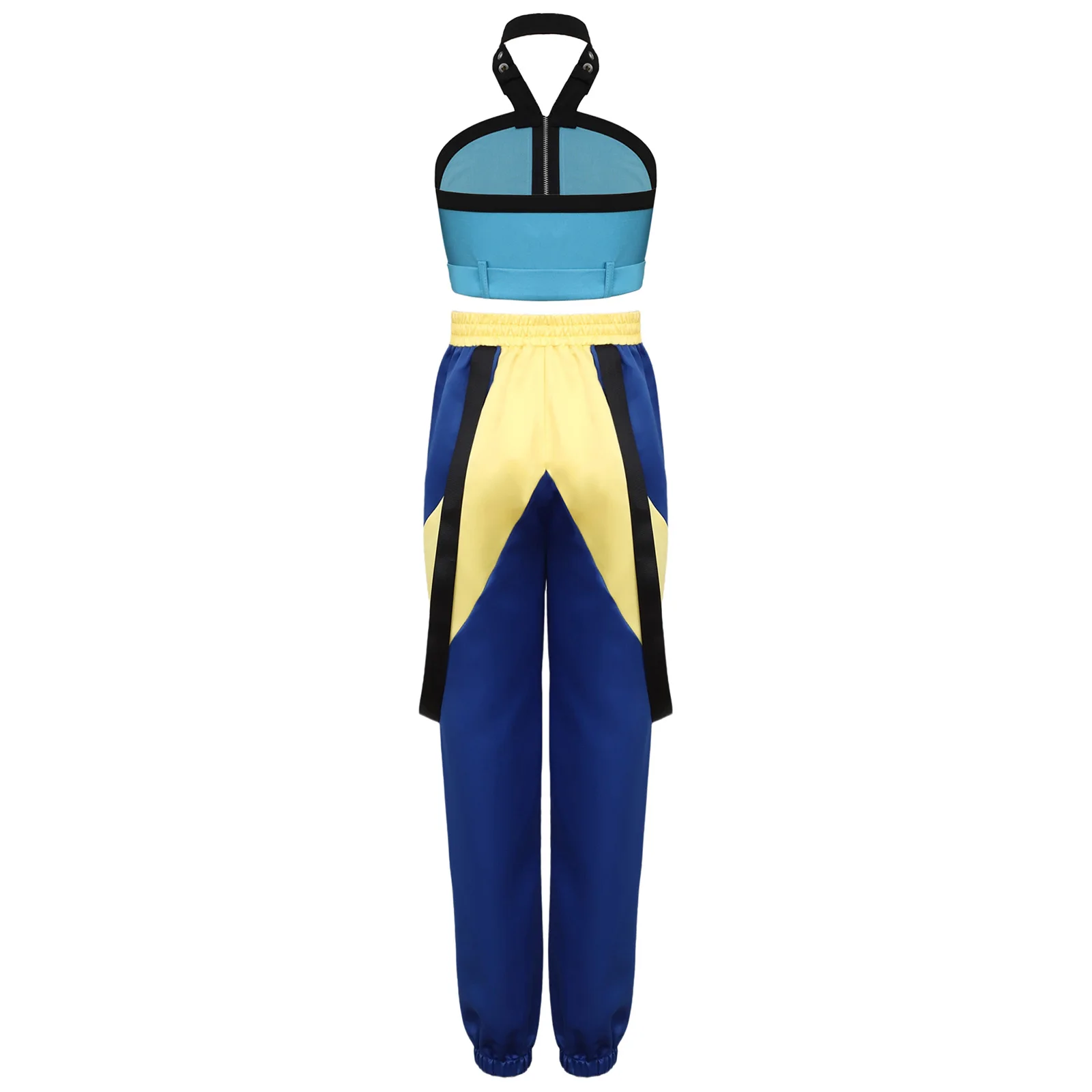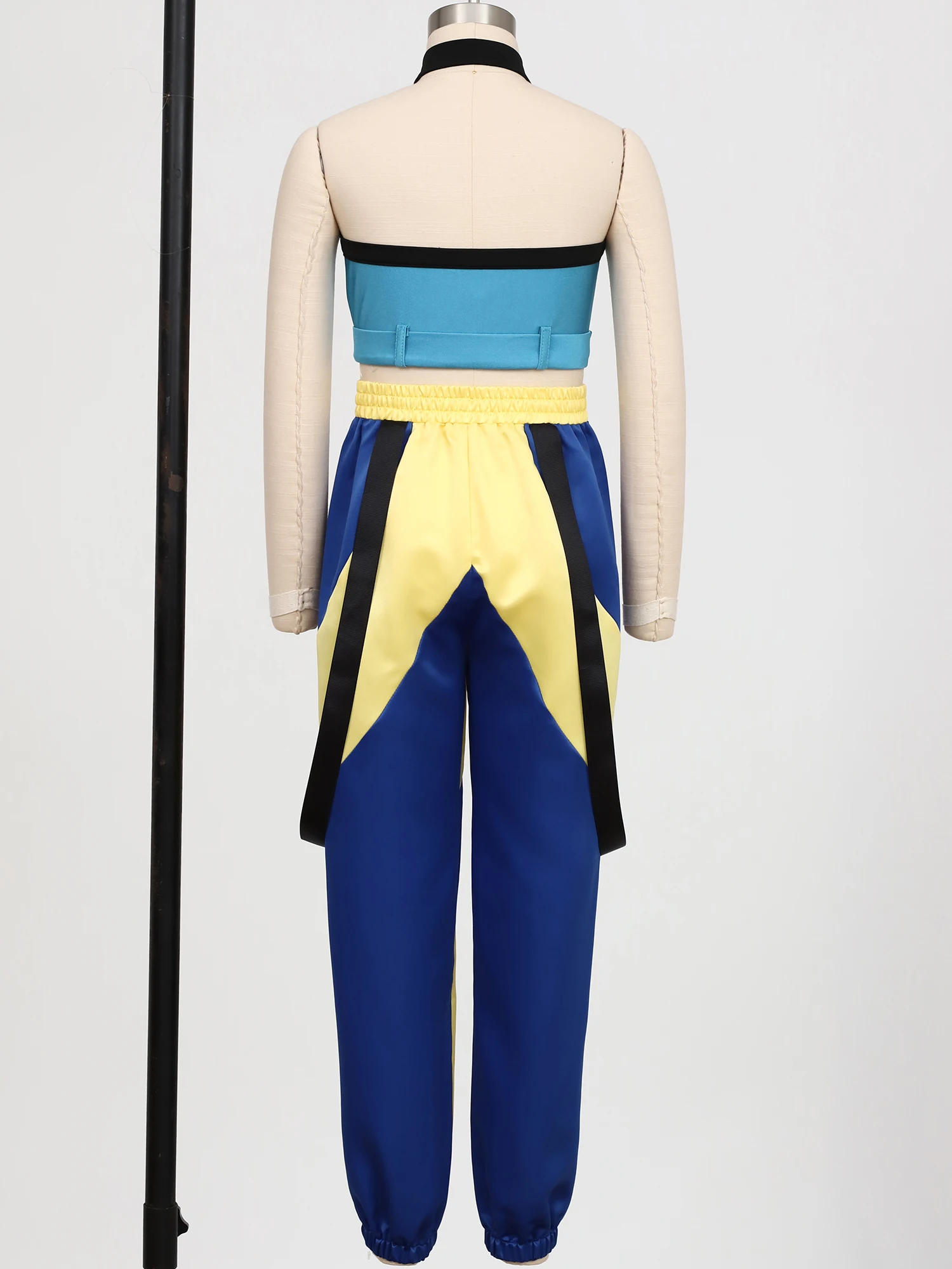 Ce costume de chasseuse de démons inspiré de la K-Pop pour filles comprend un haut court, un pantalon long et une ceinture.