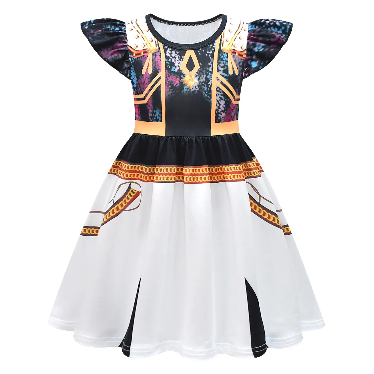 Cette robe pour filles, conçue pour les âges de 4 à 6 ans, présente une coupe A confortable avec une longueur au genou et des manches courtes.