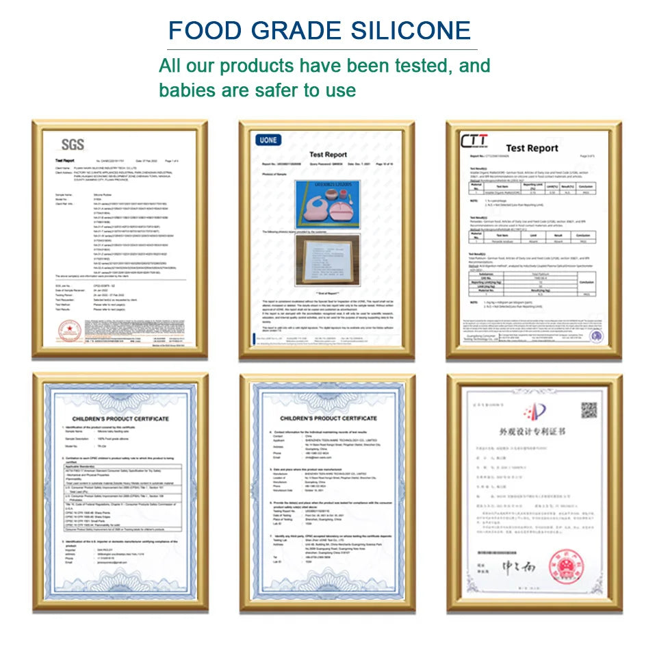Nos produits de sevrage dirigé par bébé sont fabriqués en silicone de haute qualité, sans BPA, PVC et phtalates. Ils sont fiables et ne risquent pas de blesser la peau de bébé. Doux et lisses, anti-chute, résistants à la décoloration et aux dommages, ils peuvent être utilisés en toute sécurité pendant longtemps.