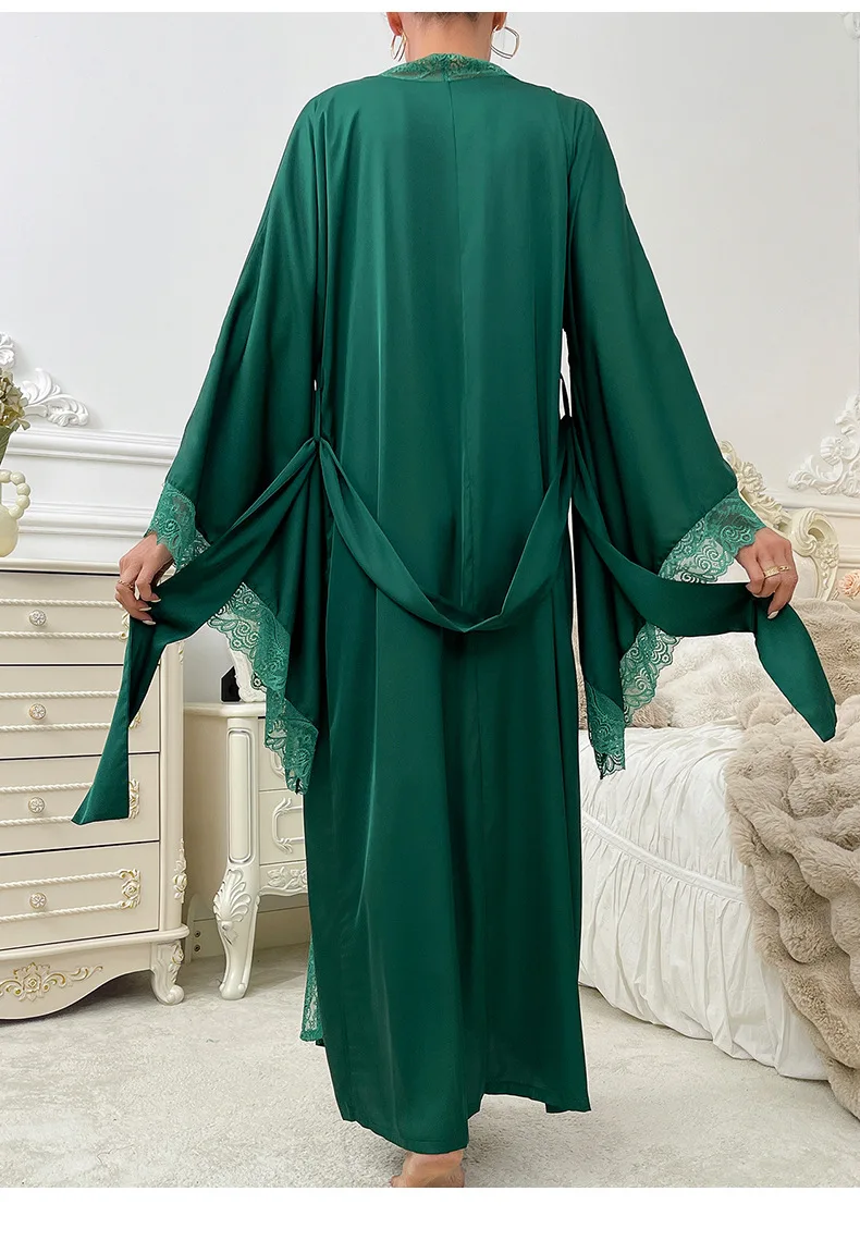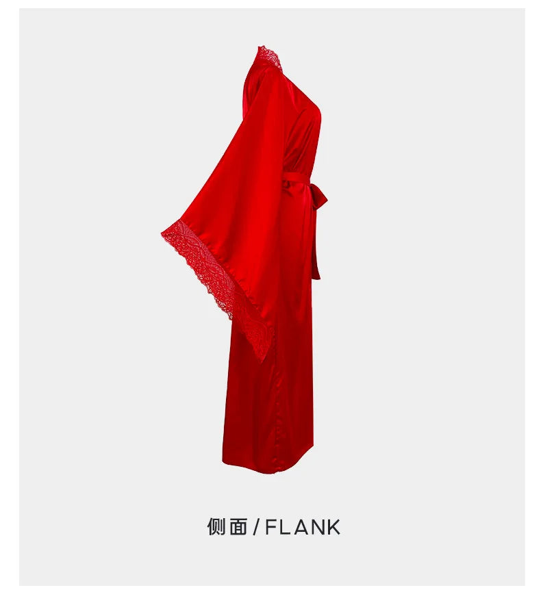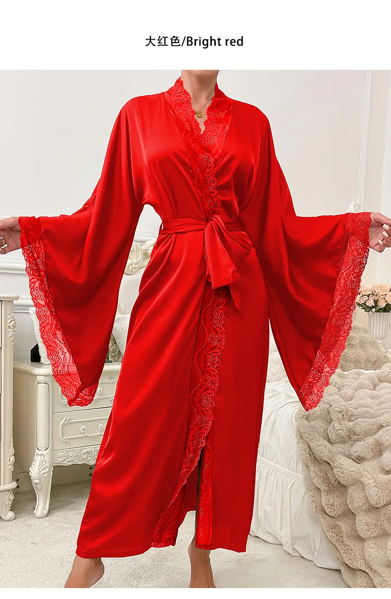 Robe de chambre ultra longue en dentelle patchwork pour femme, kimono sexy, vêtements de nuit en soie glacée